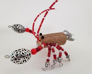 Wine Cork Beaded Red Crab, Unique Nautical Beach House Décor