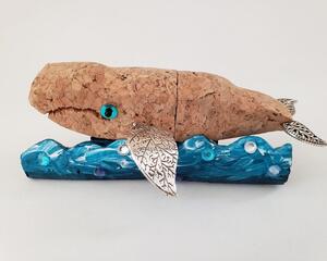 Champagne Cork Whale on Wine Cork Waves, Unique Gift for Whal...